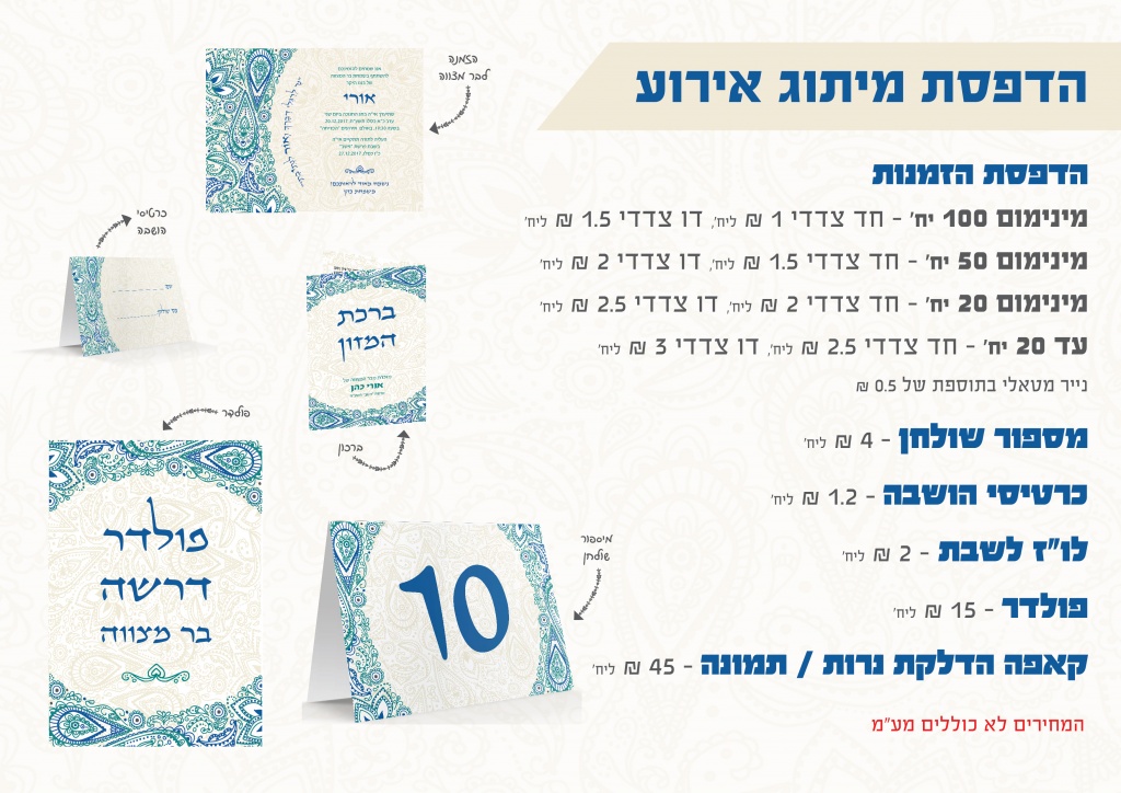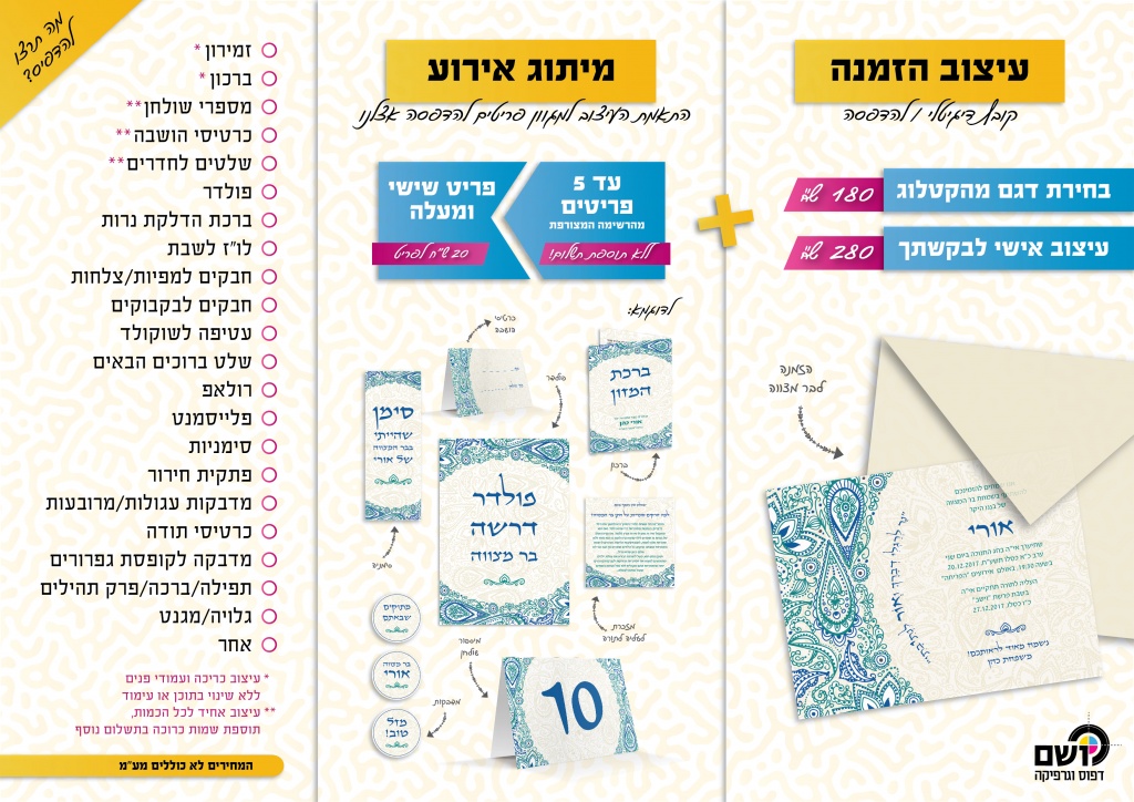• עיצוב הזמנה ע"פ הדגם הנבחר